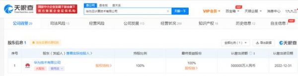 华为云计算公司注册资本由5000万增至50亿(天眼查)1