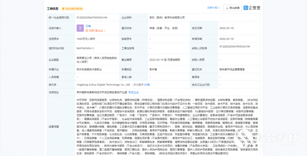 企查查APP显示,3月19日,京东(梨树)数字科技有限公司成立,法定代表人为王楠,注册资本1000万元人民币,经营范围包含:5G通信技术服务;云计算设备销售;物联网设备销售;互联网设备销售等。企查查股权穿透显示,该公司由京东云计算有限公司间接全资控股。