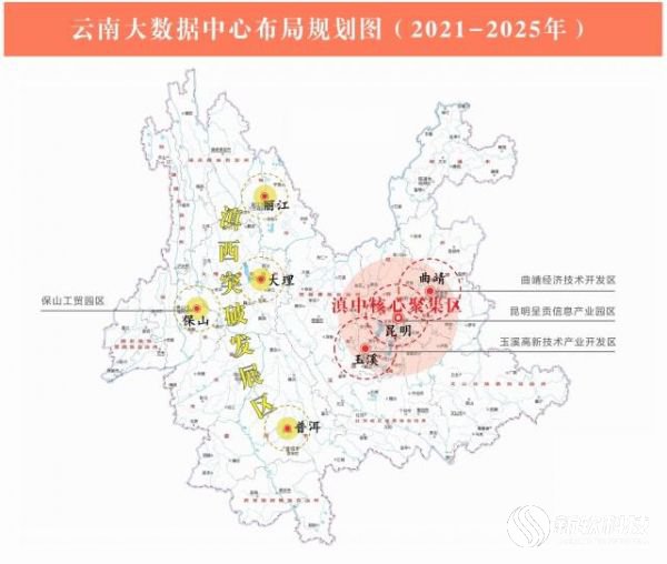 在滇中,要把握“东数西算”机遇,支持昆明、玉溪、曲靖等州(市)着力打造高速互联、数据流通、优势互补的云南滇中数据中心集群,形成以昆明为核心节点、玉溪为双活节点、保山为异地灾备的“两地三中心”多层布局。支持部署面向全国提供优质服务的大型或超大型数据中心、智能计算中心、区块链算力中心等新型数据中心集聚发展,支撑全省产业升级、城市发展与科技创新。将昆明、滇中新区作为全省信息产业的主战场,主要布局国家级多语言技术研发和产业化基地,重点发展多语言数字技术、信创产业、半导体材料、半导体显示、区块链等。
