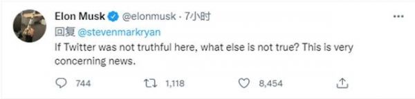 推特受罚后,世界首富、特斯拉CEO马斯克立即发声。马斯克25日在推特上写道:“如果推特在这里不真实,还有什么是不真实的?这是非常令人担忧的消息。”