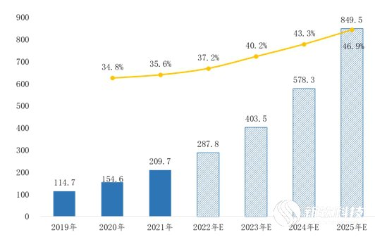 随着算力需求的增长,数据中心功率密度越来越高,传统风冷空调已经不能满足数据中心温控需求,液冷方案优势逐渐凸显,随着国家对数据中心PUE的要求越来越低,不管是新建机房,还是老旧机房,液冷技术的应用空间非常广阔。据科智咨询数据,2021年中国液冷数据中心应用规模达到209.7亿元,同比增长35.6%,预计2025年液冷数据中心应用规模达到850亿元。