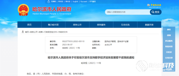 哈尔滨市人民政府关于印发哈尔滨市支持数字经济加快发展若干政策的通知