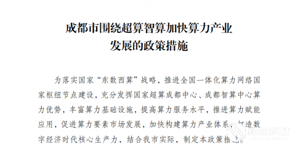 1月,成都市印发《成都市围绕超算智算加快算力产业发展的政策措施》(以下简称《政策措施》),表示将建立以"算力券"为核心的算力中心运营统筹结算分担机制,结合区块链等新技术实现"算力券"有效监管。每年发放总额不超过1000万元的"算力券",用于支持算力中介服务机构、科技型中小微企业和创客、科研机构、高校等使用国家超算成都中心、成都智算中心算力资源。