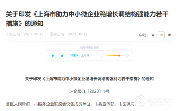 《上海市助力中小微企业稳增长调结构强能力若干措施》截图
